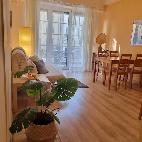 - Living Room: Includes a dining table and a sofa (sofa bed for extra guests)